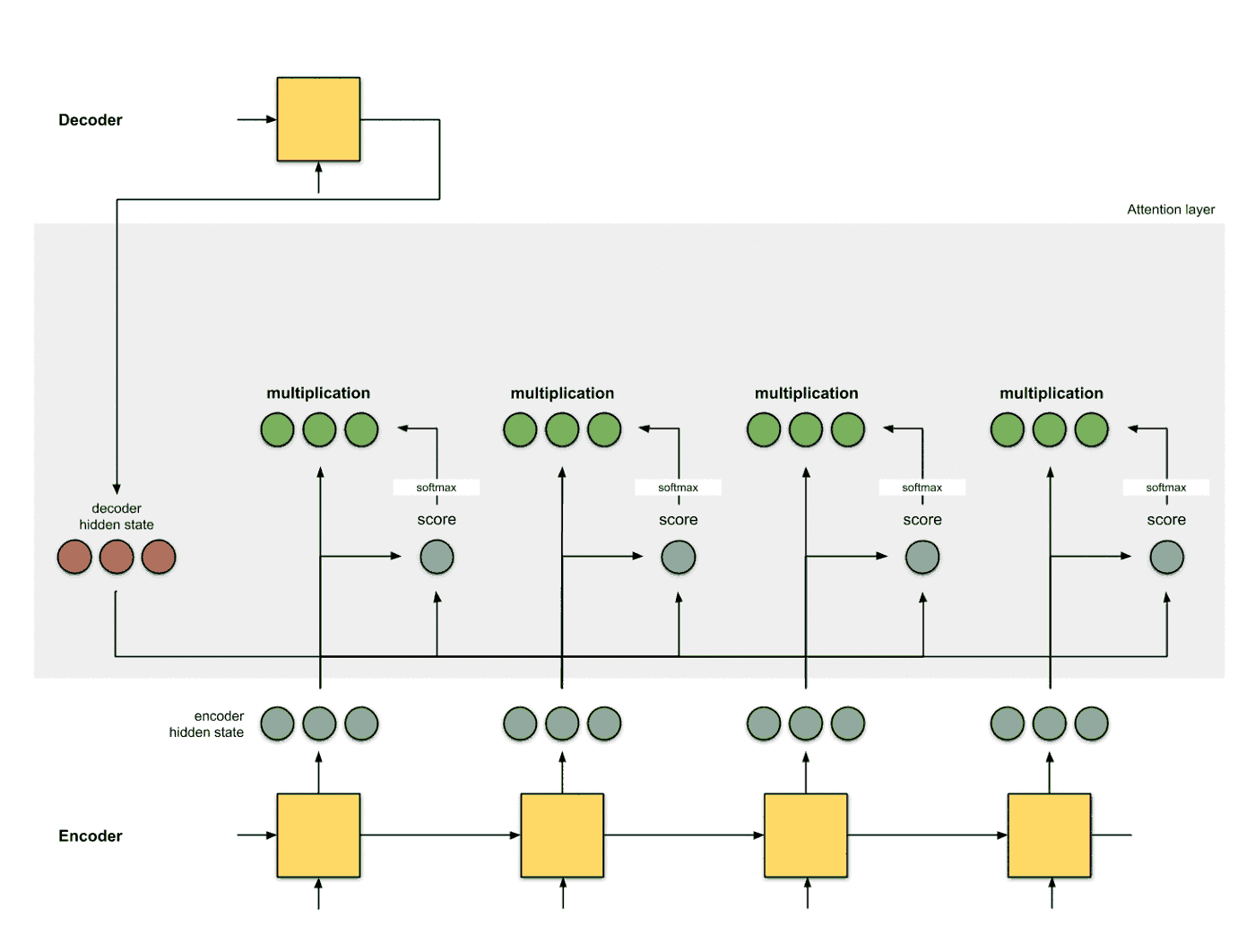 既然如此, 与其输入最后一个时间片的结果, 不如将每个时间片的输出都提供给解码器. 那么解码器如何使用这些特征就是我们这里介绍的Attention的作用.